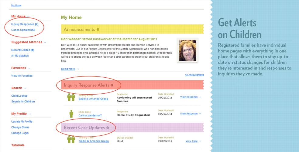 - Inquire about children with a simple click of a button and let your caseworker know you’ve done so