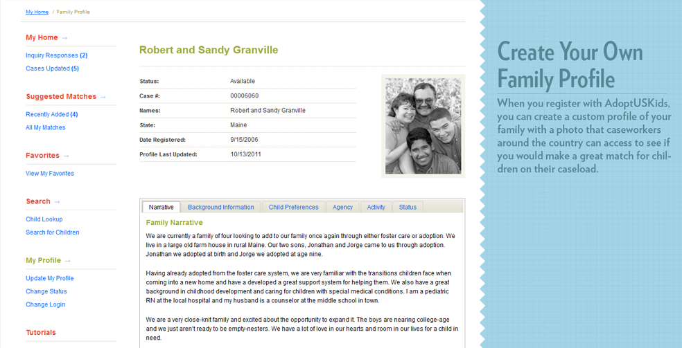 - Create an online profile of your family that caseworkers around the country can access to see if you would make a great match for children on their caseload